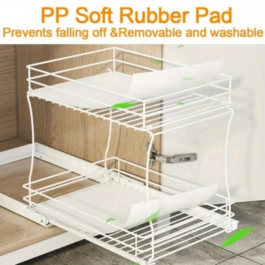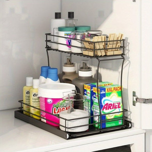 Double Slide-out Sink Cabinet Organizer, Under Sink Organizer In Kitchen And Bathroom Cabinets, Medium, Black