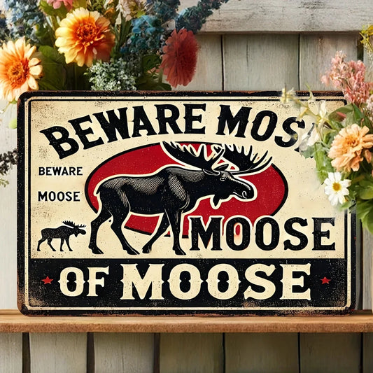 1PC Rustic Iron Sign Beware of Moose Vintage Wall Art Engraved Aluminium Foil Decoration for Home Garden Cafe and Outdoor Spaces