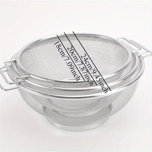 3-Piece Stainless Steel Colander Set with Handles for Kitchen Multi-Purpose